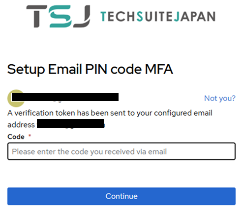 登録のEmaiアドレスに確認用PINコードが送信されますので、それを記入してContinueを押してください。